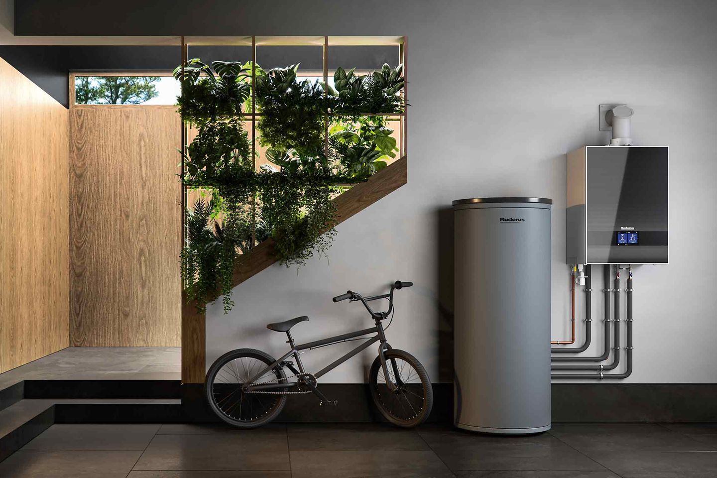 Wärmepumpen-Hybridsysteme sind ein weiteres Aushängeschild im Produktportfolio von Buderus. Sie bestehen aus einer Wärmepumpen-Außeneinheit und einem Spitzenlastkessel konventioneller Art.