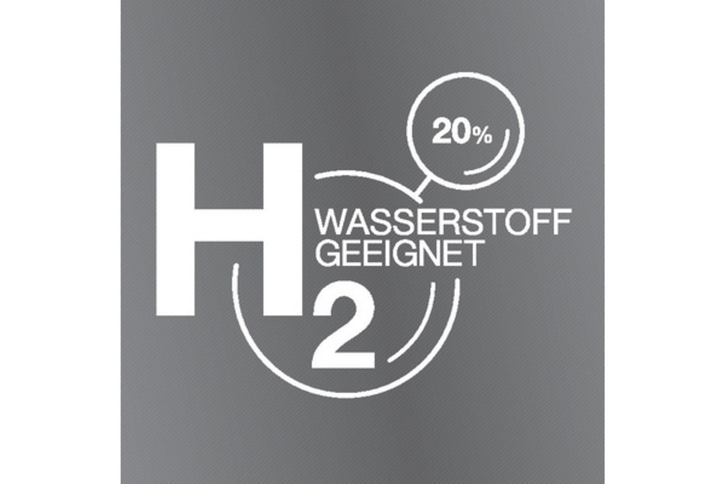 Für den Klimaschutz offenbart ein gasförmiger Energieträger hohes Potenzial: Wasserstoff. Schon jetzt können 20 % Wasserstoff dem Erdgas beigemischt werden und somit der CO2-Ausstoß deutlich verringert werden. Deshalb wird diese Beimischung als ein weiterer Baustein angesehen, mit dem die Klimaschutzziele erfüllt werden können. Mit dem H2-ready-Zeichen werden Geräte gekennzeichnet, die für den Betrieb mit einem Erdgas-Wasserstoff-Gemisch (max. 20% H2) geeignet sind.