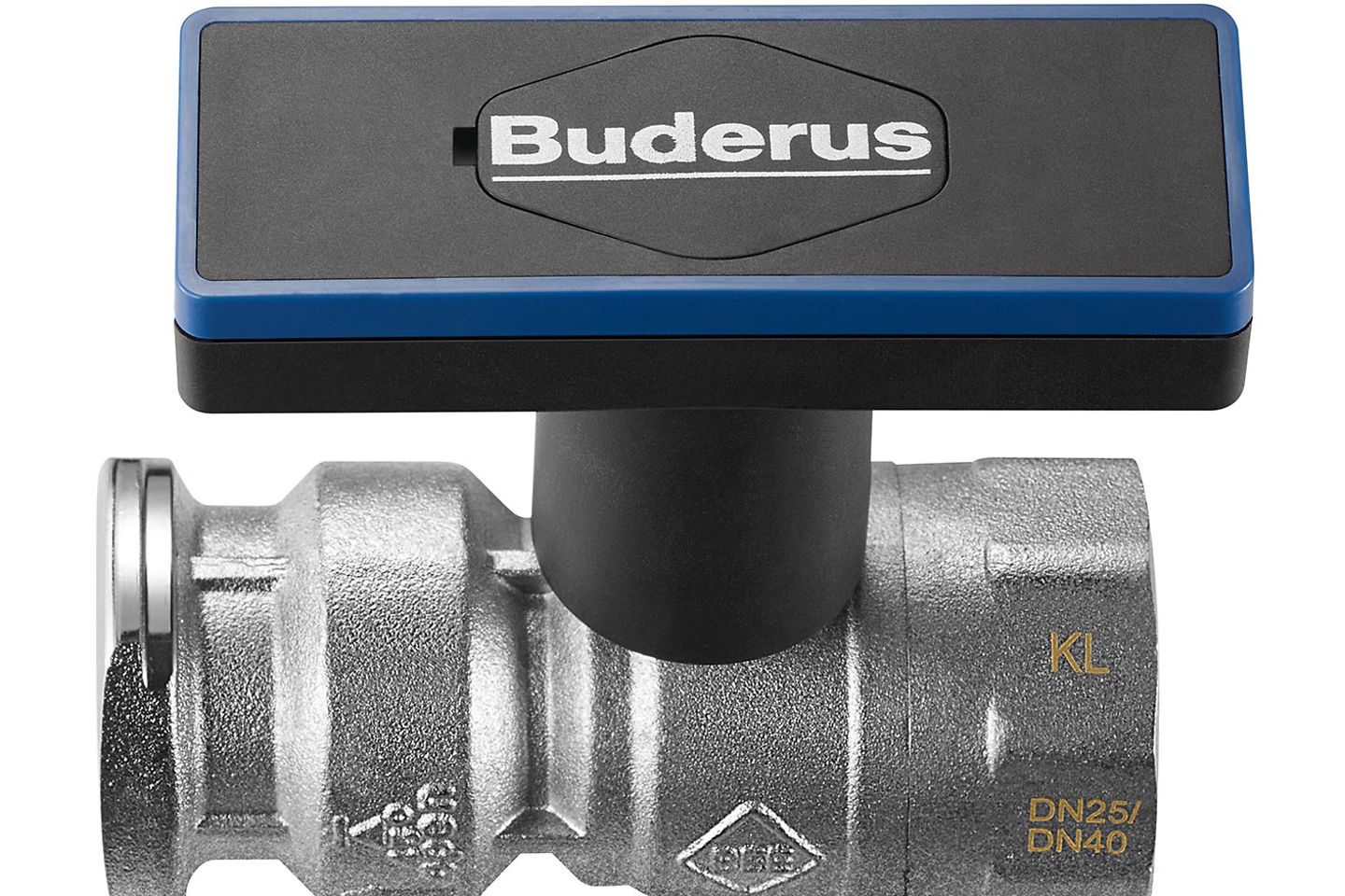 Das Systemzubehör zeichnet sich durch ein charakteristisches blaues Ringelement aus – so auch beim Logafix Pumpenkugelhahn.