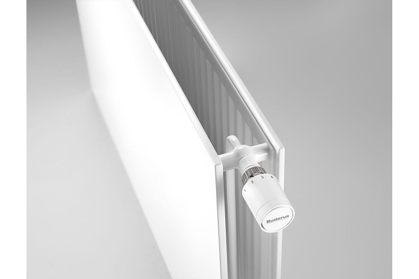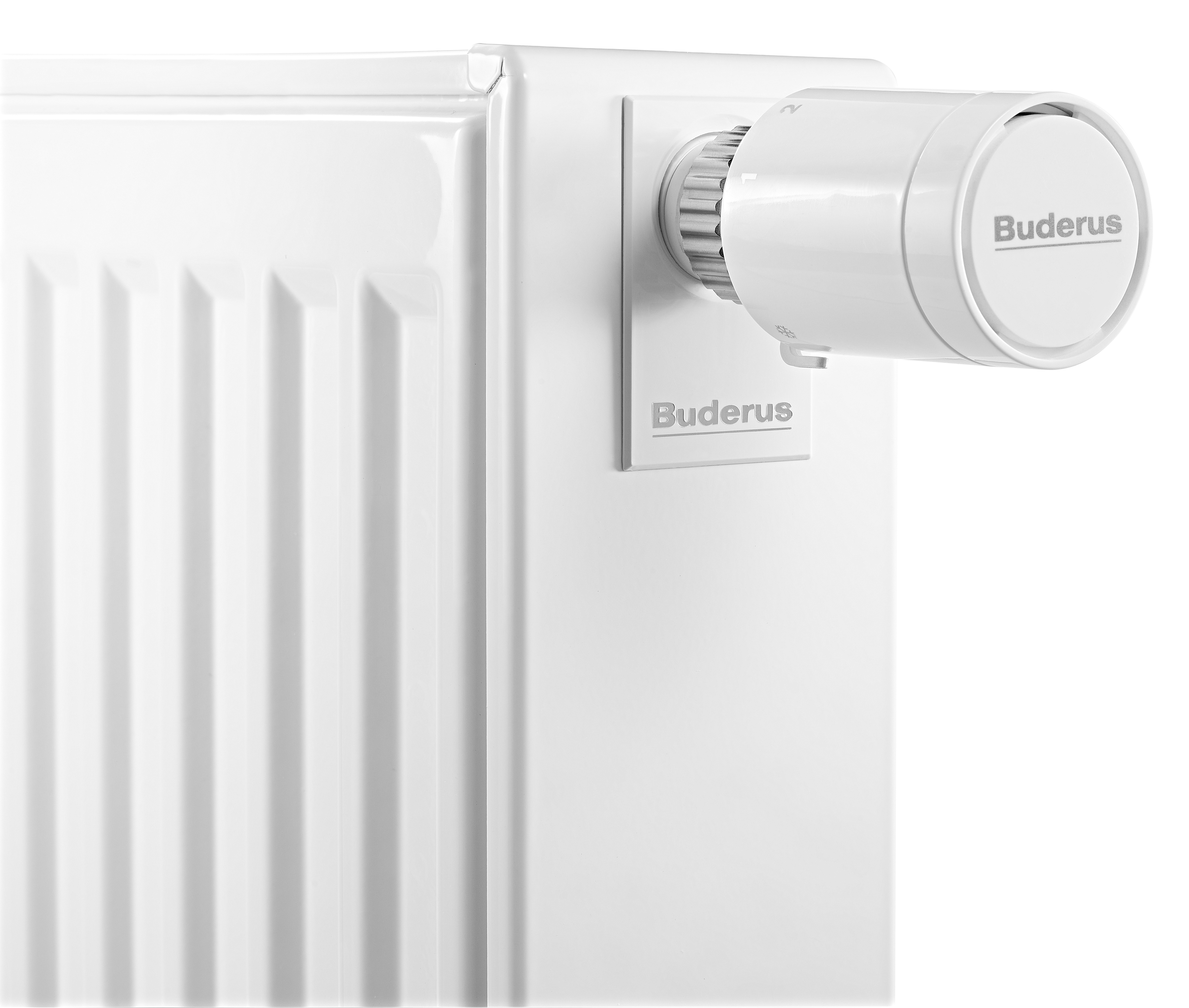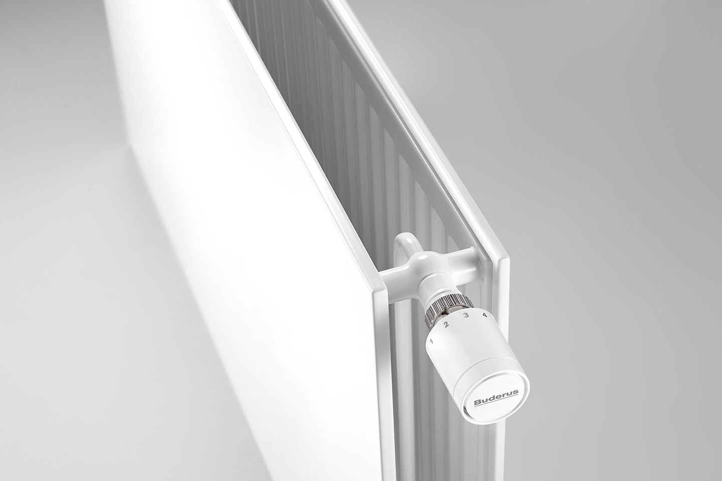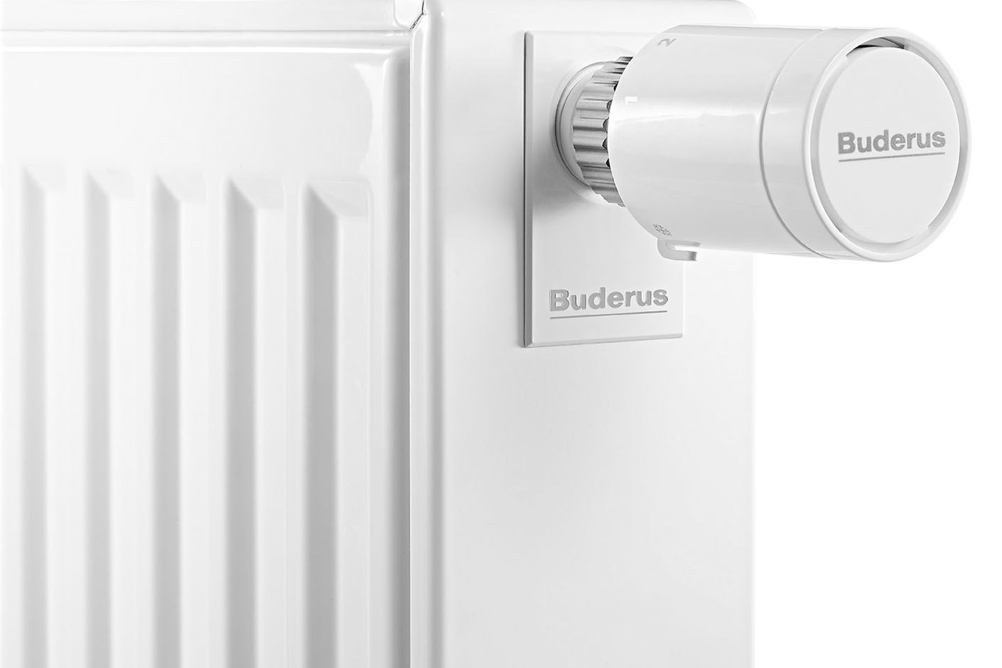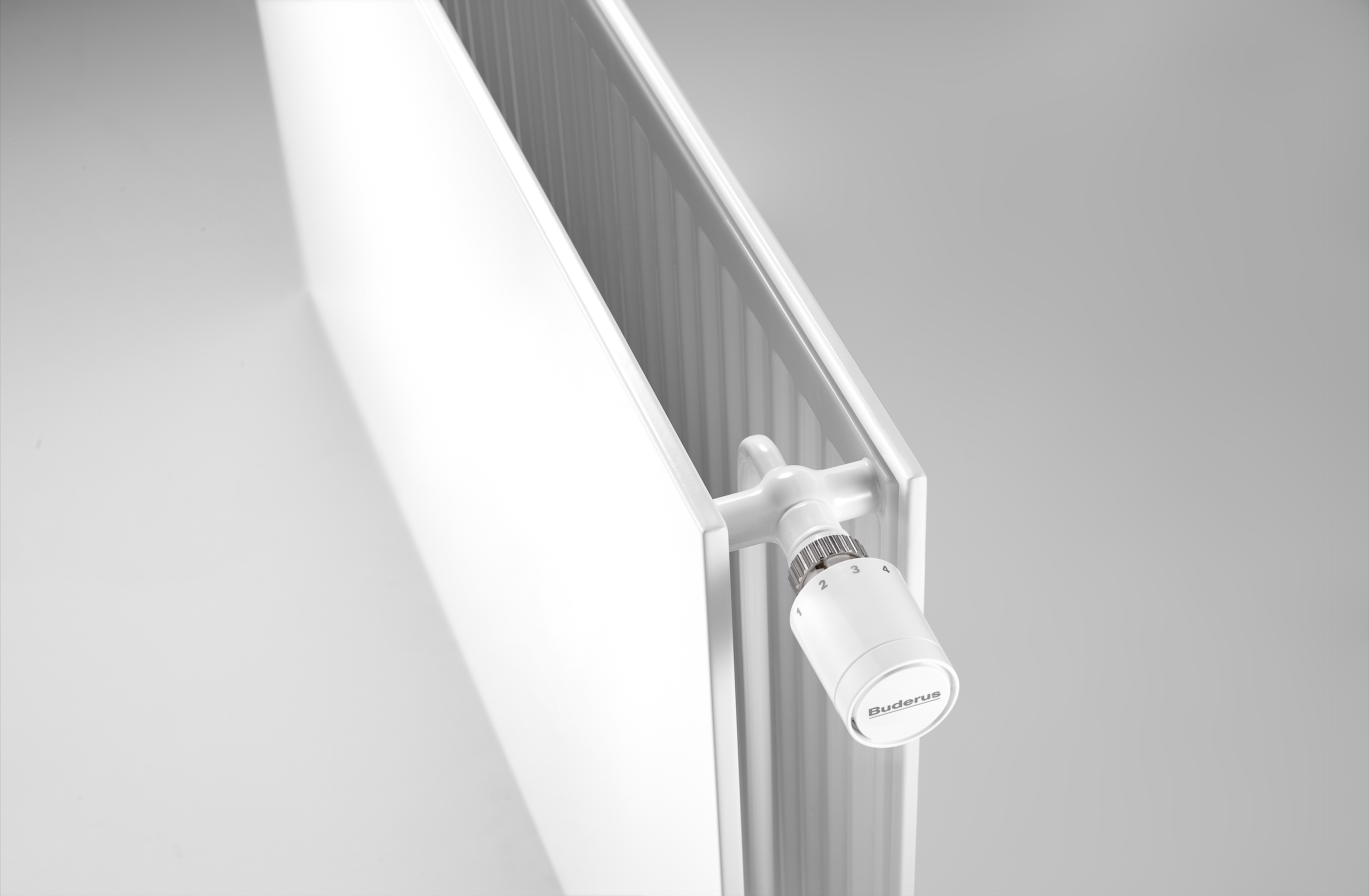 Die Logatrend Flachheizkörper in Kompakt-, Vertikal-, Ventil- und Mittenanschluss-Bauweise decken ein breites Einsatzspektrum ab. Heizungsfachfirmen können für die individuellen Anforderungen am Einbauort wählen zwischen profilierten oder planen Ausführungen mit insgesamt 5 Bauhöhen und 21 Baulängen. Mit ihrer geringen Regelabweichung von ≤ 1K über den gesamten Auslegungsbereich verbessern die Buderus 1K-Ventile die Effizienz des Heizsystems. Sie sind werkseitig bereits optimal auf die Heizkörpergröße voreingestellt.