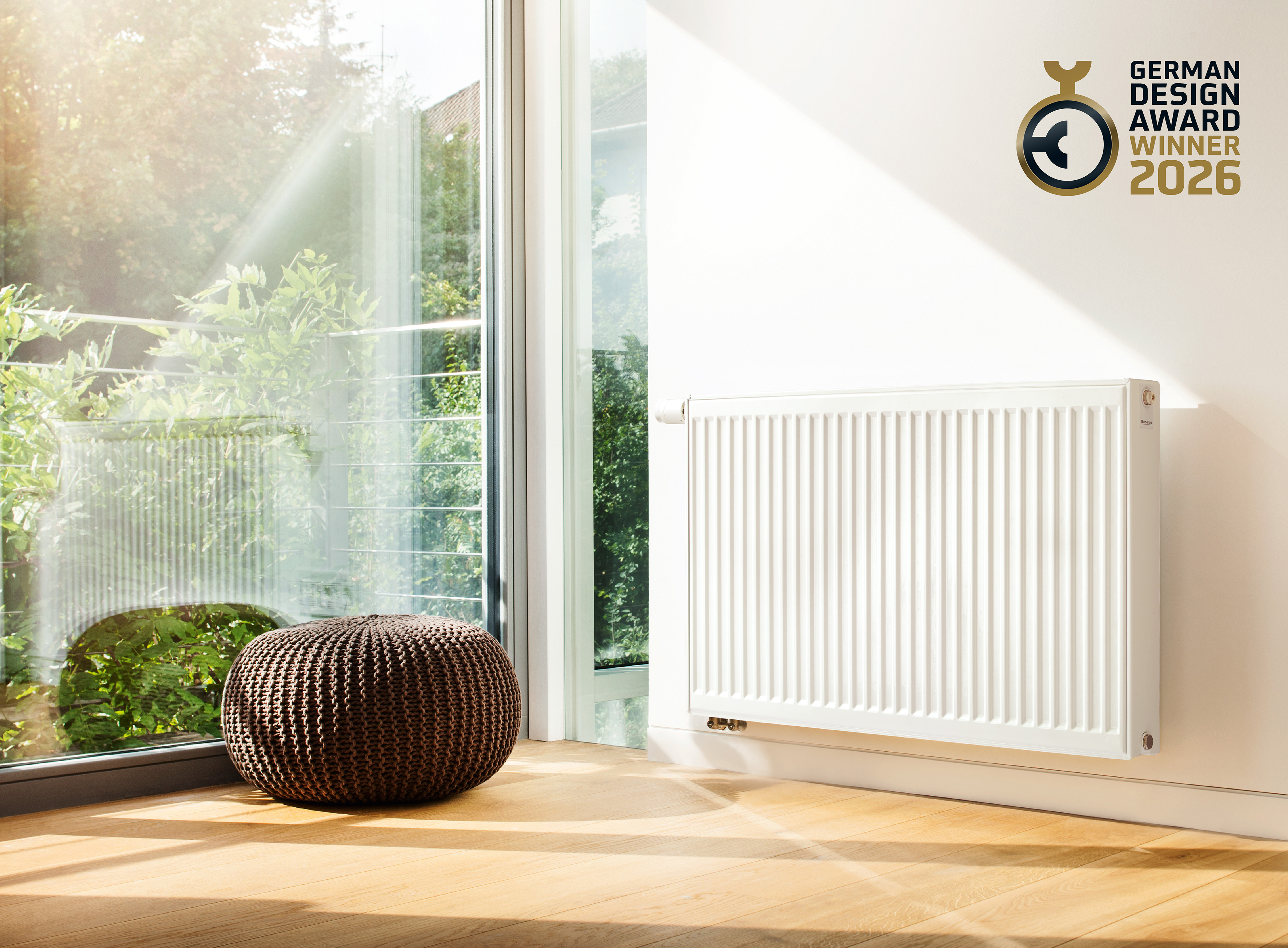 Bildunterschrift: Der Rat für Formgebung hat die neuen Flachheizkörper Logatrend beim German Design Award 2026 als „Winner“ ausgezeichnet.