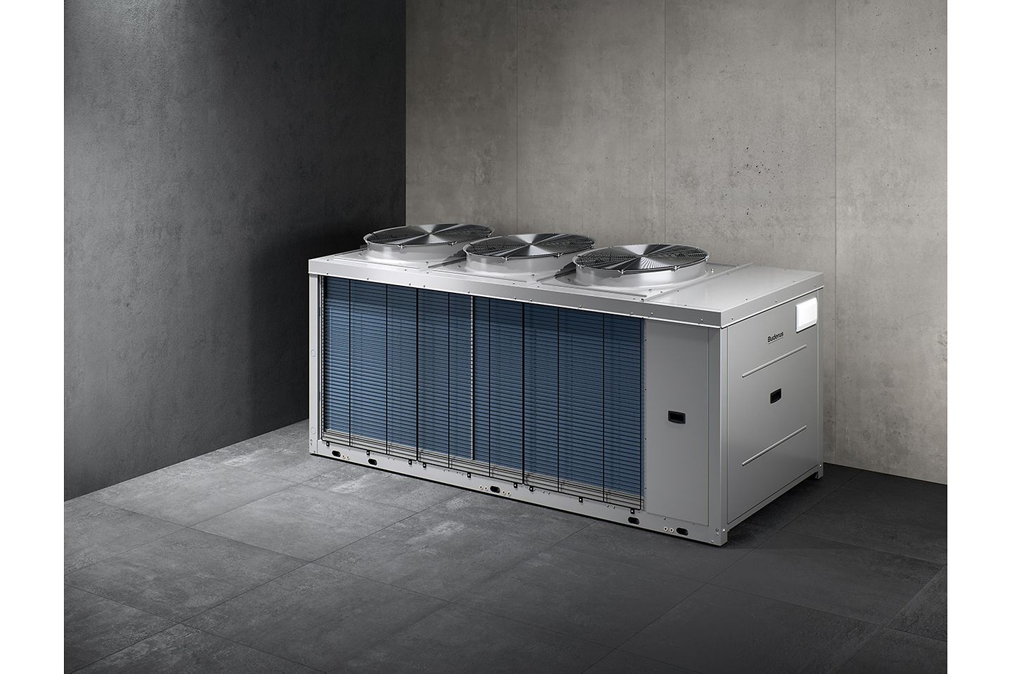 Neue Buderus Luft-Wasser-Wärmepumpe Logatherm WLW276 fürs Heizen und Kühlen von Industriegebäuden, Gewerberäumen und öffentlichen Einrichtungen