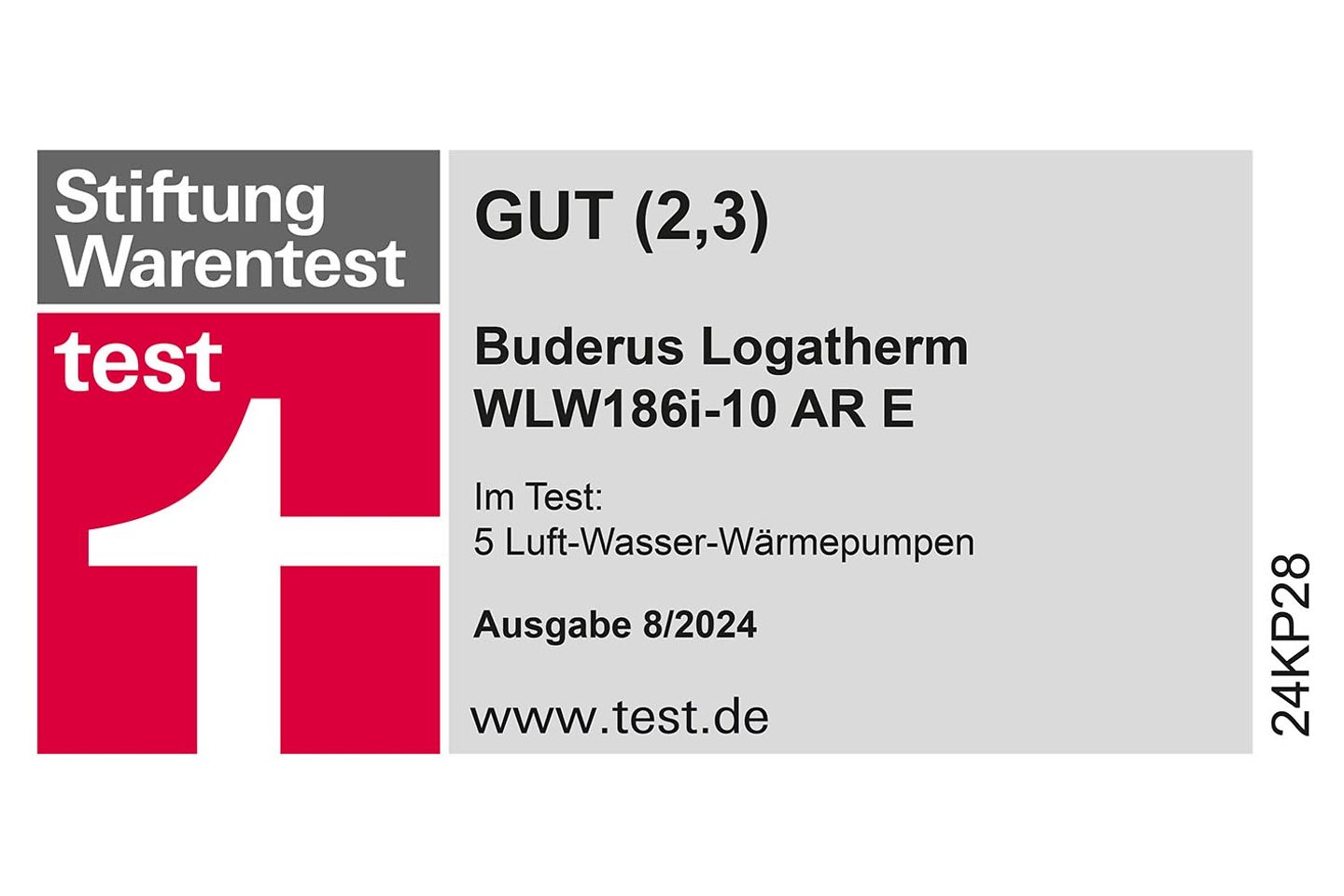 Bei Stiftung Warentest erzielte die Luft-Wasser-Wärmepumpe Logatherm WLW186i-10 AR E von Buderus einen überzeugenden Testsieg: Mit dem Urteil „Gut“ (Gesamtnote 2,3) ist sie nicht nur Testsieger, sondern auch Umwelttipp und Preistipp. Den Gesamtsieg teilt sich die Logatherm WLW186i-10 AR E punktgleich mit der Wärmepumpe eines weiteren Herstellers. Insgesamt wurden fünf Luft-Wasser-Wärmepumpen mit einer Leistung von sieben bis zehn Kilowatt getestet. Die Monoblock-Geräte haben einen geschlossenen Kältemittelkreislauf im Außengerät und nutzen Propan (R290) als Kältemittel.
