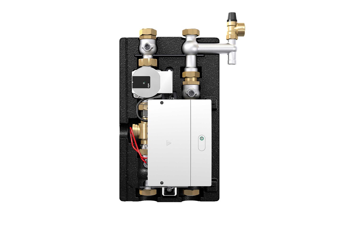 Bei den neuen Buderus Hybrid-Hydraulikboxen HW-Set HYC25 und HB-Set HYC25 sind alle erforderlichen hydraulischen Komponenten sowie der Hybridmanager HM200 werksseitig integriert.