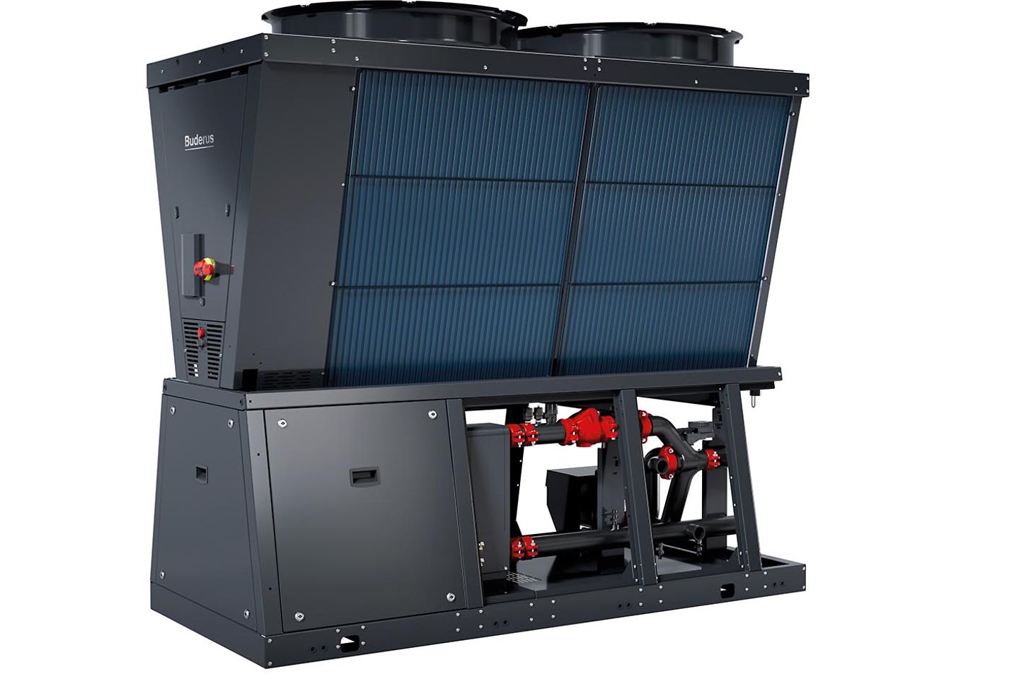 Starke Leistung für die Energiewende: Die Buderus Luft-Wasser-Wärmepumpe Logatherm WLW286 kombiniert mit anderen Wärmeerzeugern ermöglicht Hybridsysteme in großen Gebäuden.
