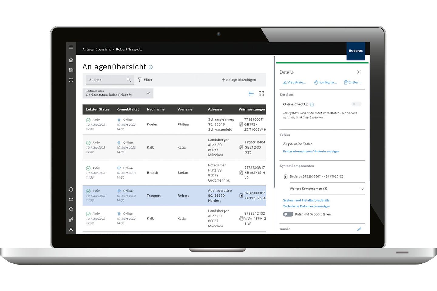 Ist der Wärmeerzeuger über das LAN- und Funkmodul MX400 ans Internet angebunden, sind praktische Services wie ein Heizungsmonitoring über das Webportal Buderus ConnectPRO möglich.