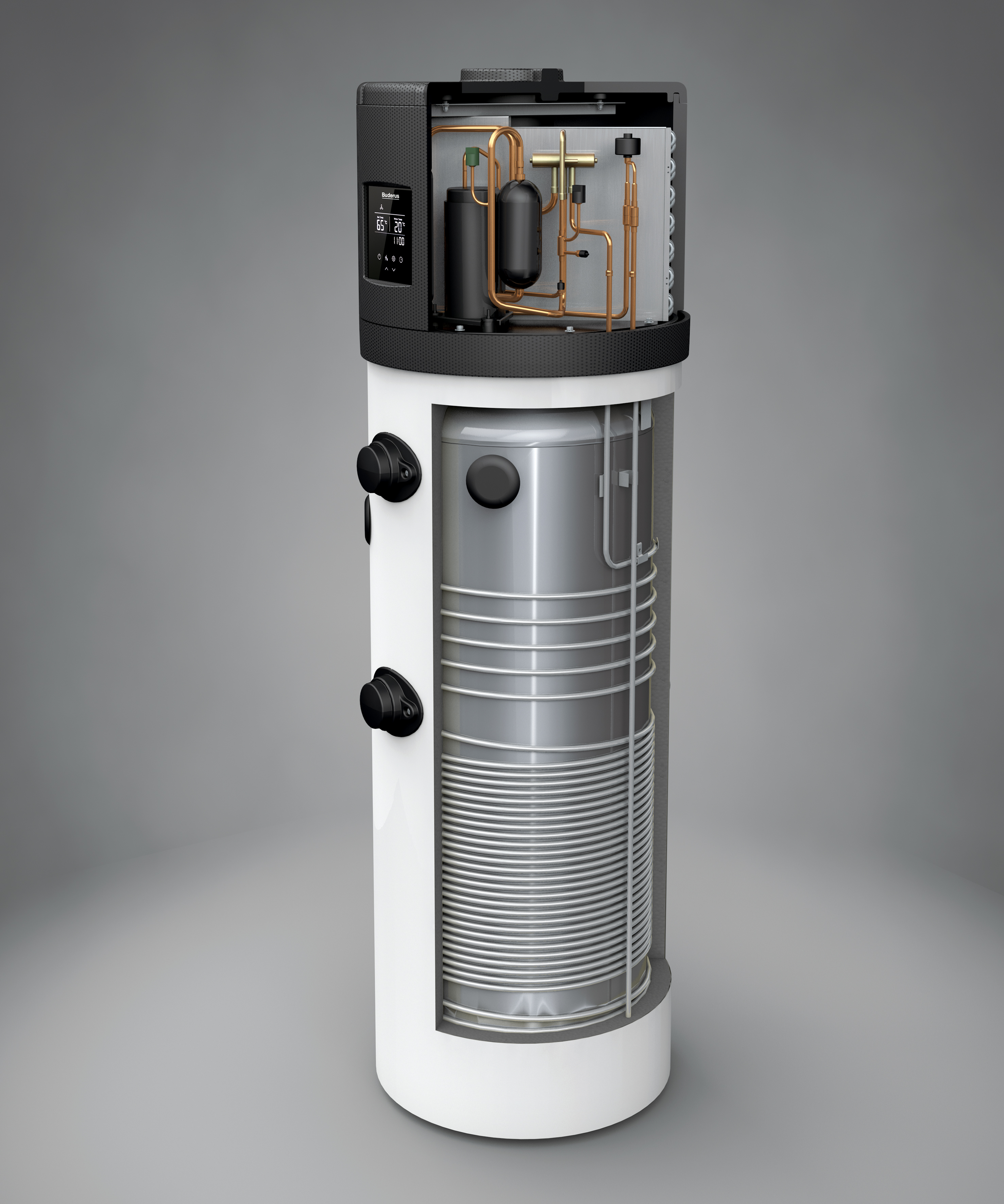 Die neue Generation der Warmwasser-Wärmepumpe Logatherm WPT des Systemexperten Buderus arbeitet sehr effizient mit einem COP von bis zu 3,6.