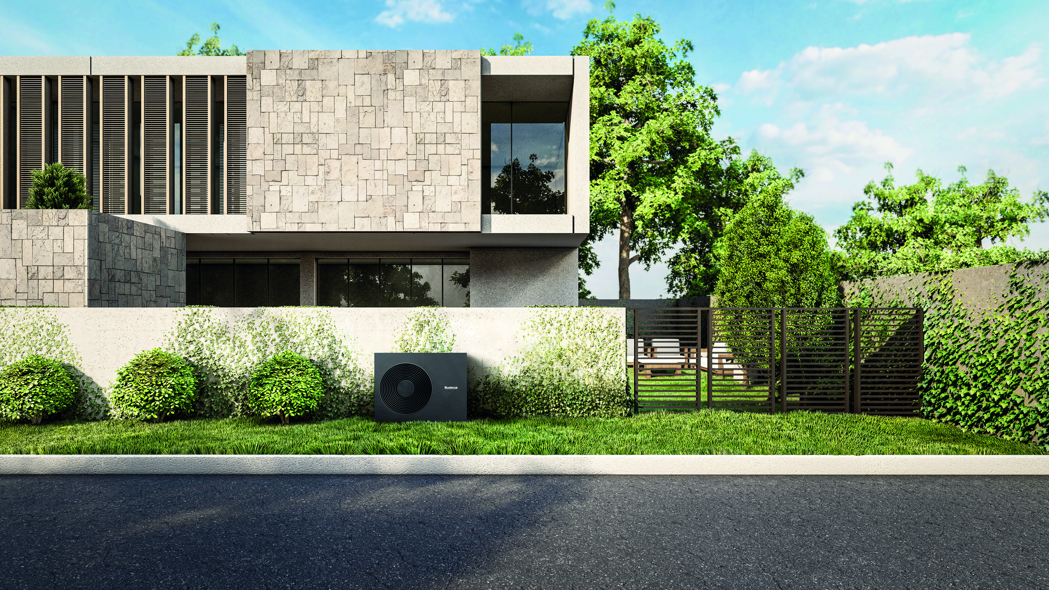 Buderus hat die neue Außeneinheit WLW MBE+ AR speziell für die Sanierung von Heizsystemen in Ein- und Zweifamilienhäusern entwickelt